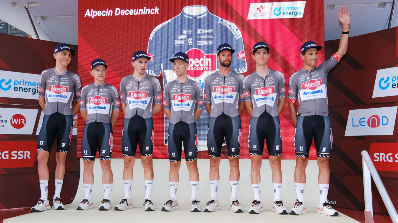 Seit 17.30 Uhr ist auf dem Hauptplatz die Teampräsentation im Gang. Den Anfang machte das Team Alpecin-Deceunick mit dem Schweizer Silvan Dillier.