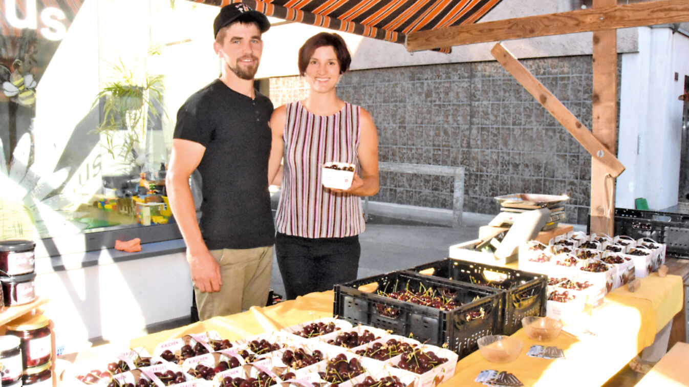 Der vergangene Samschtig Märt war dem Chriesi gewidmet. An drei Ständen konnten sich die Besucher mit der süssen, schwarzen Frucht eindecken. Im Verlauf des Morgens gingen dabei gut 200 Kilogramm Kirschen über die Theke.